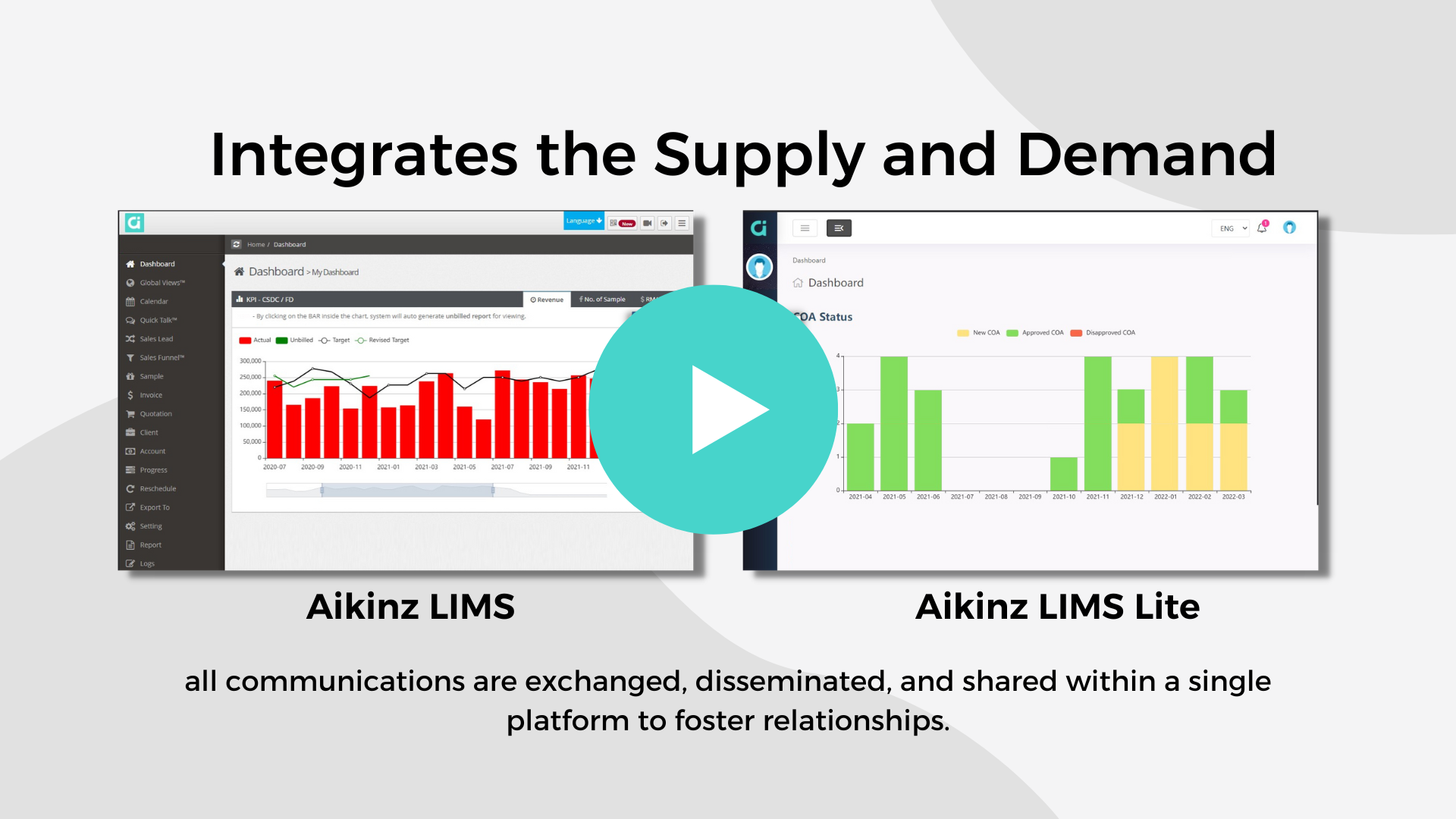 A scaled-down version, Aikinz LIMS-Lite, was built to suit lite users’ needs, Aikinz has identified a new and more significant goal. Now we want to bring Aikinz LIMS-Lite users (businesses that send their products for lab testing and certification) and Aikinz LIMS users (third-party laboratories) together using our cloud-based platform to integrate the global demand and supply into a single platform that could harmonize trades and bi-lateral businesses.